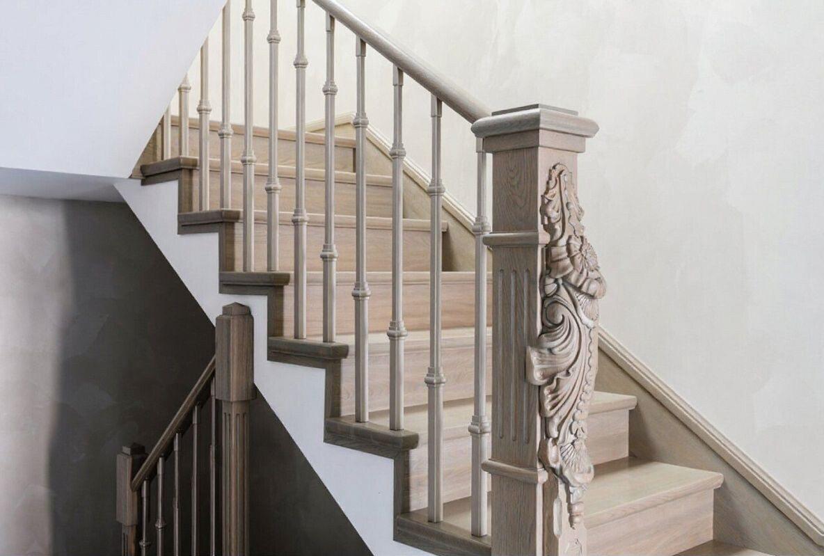 Профессиональная отделка П-образной лестницы на второй этаж
