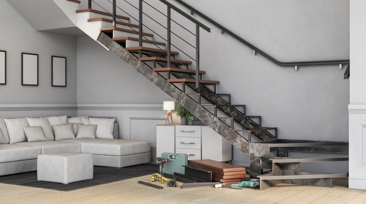 Отделка прямой лестницы на металлокаркасе – надёжность для вашего дома